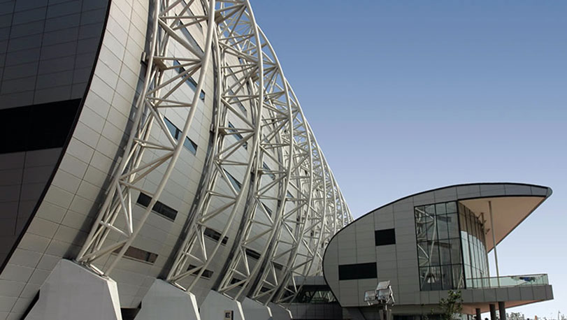 天津泰達(dá)足球場位于天津濱海新區(qū),于2004年建成。足球場建筑面積6萬平方米,可容納3.7萬名觀眾,是迄今為止天津最現(xiàn)代化的足球比賽場地。墻面使用