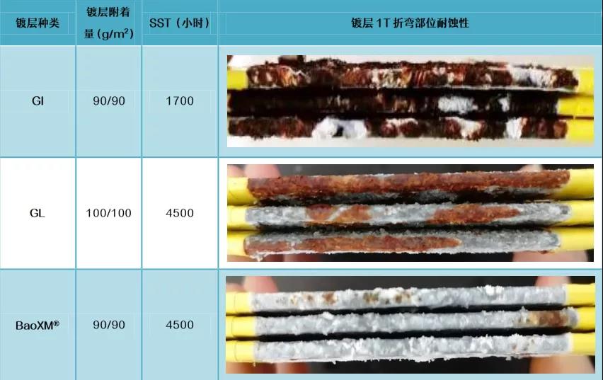 BaoXM®鍍層耐蝕性受切口影響最小,切口耐蝕性較GI、GL更為優異。