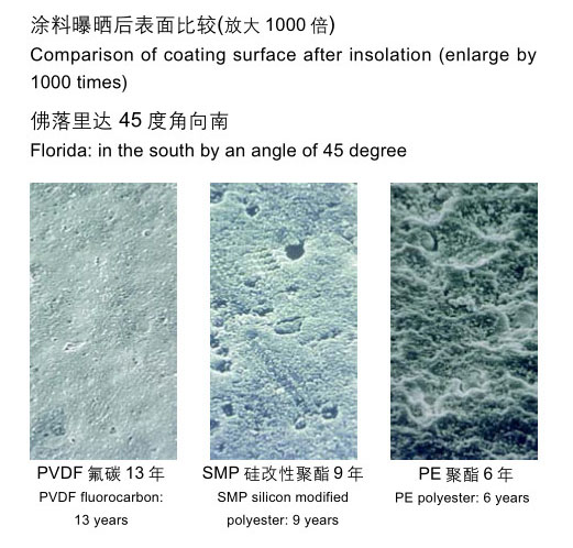 寶鋼提供的硅改性聚酯彩涂產品(SMP)和高耐候聚酯彩涂產品(HDP)均是較普通聚酯彩涂產品耐候性更優的鋼板。寶鋼對高耐候聚酯彩涂鋼板提供15年的質量保證。