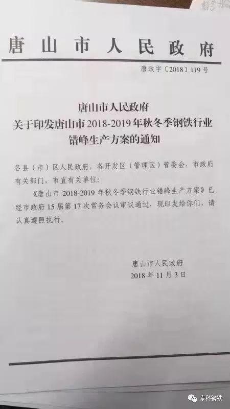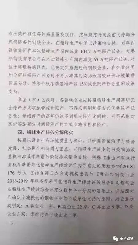 日前,唐山市2018-2019年秋冬季鋼鐵行業(yè)錯(cuò)峰生產(chǎn)方案經(jīng)過市政府15屆17次常務(wù)會(huì)議審議通過,主要內(nèi)容為:分類執(zhí)行,對(duì)提前關(guān)停部分煉鋼設(shè)備的津西鋼鐵和港陸鋼鐵將分別減免104.7萬(wàn)噸、65萬(wàn)噸限產(chǎn)任務(wù)。