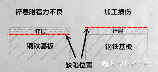 鋅層附著力不良的本質(zhì)是鍍鋅層和鋼鐵基板的結(jié)合力不佳,反映出來(lái)的就是加工變形后鋅層與基板剝離。