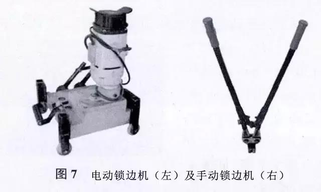 1)電動(dòng)鎖邊機(jī),用于鎖緊板肋,使板與固定座連結(jié)牢固,見(jiàn)圖7(左)。